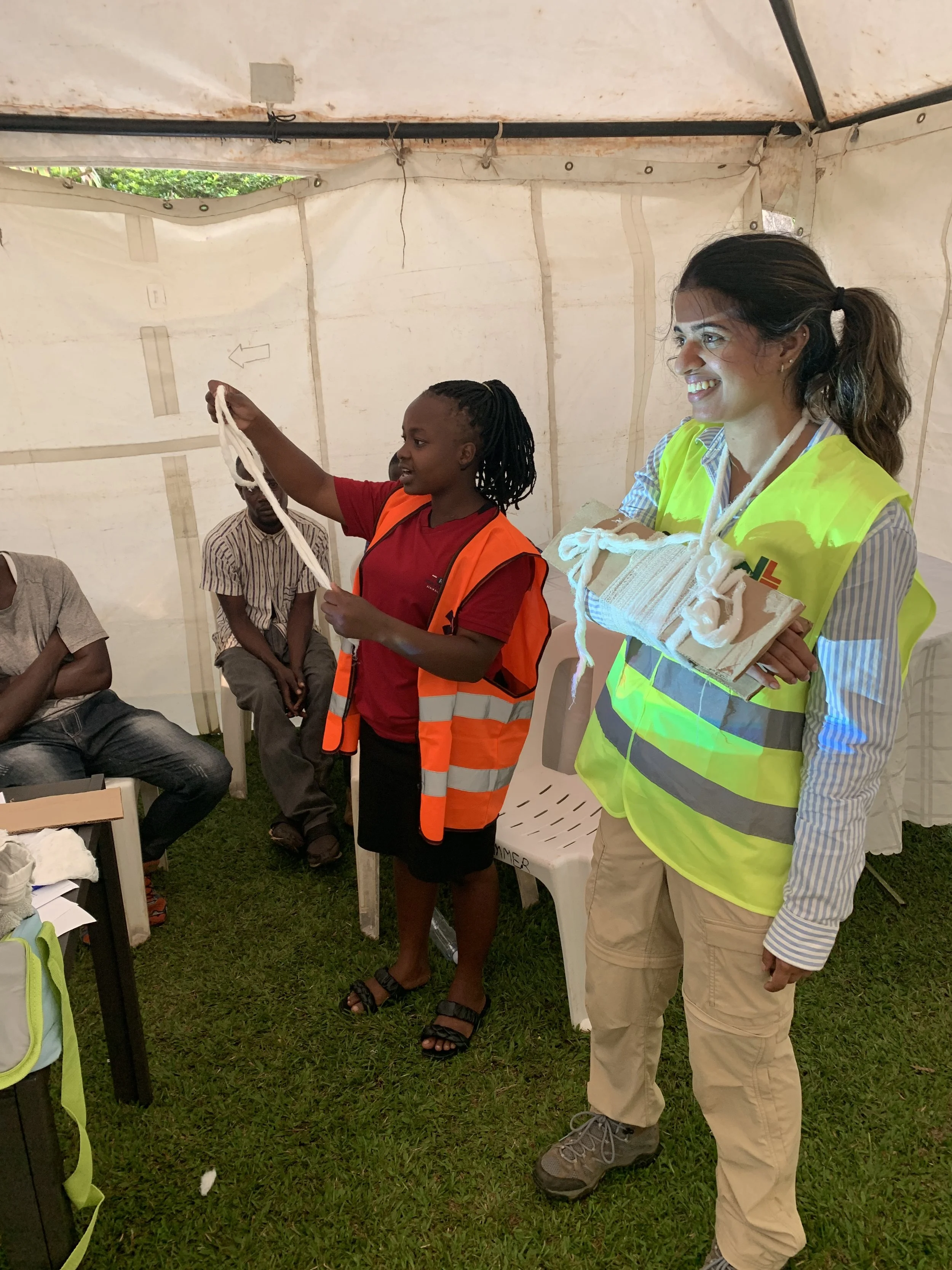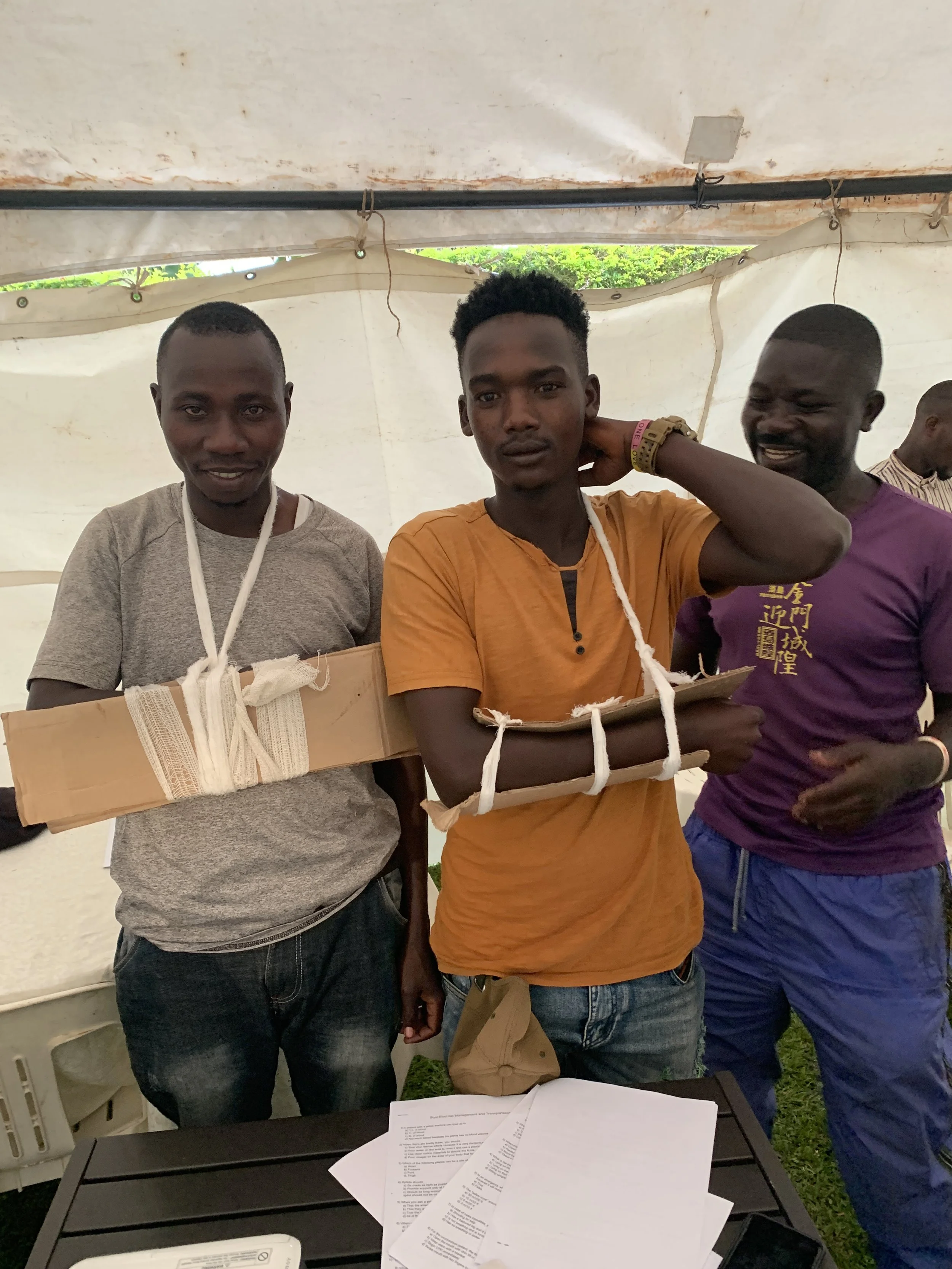 Some of our participants showing off their splint and sling skills, featuring how they do slings in Uganda
