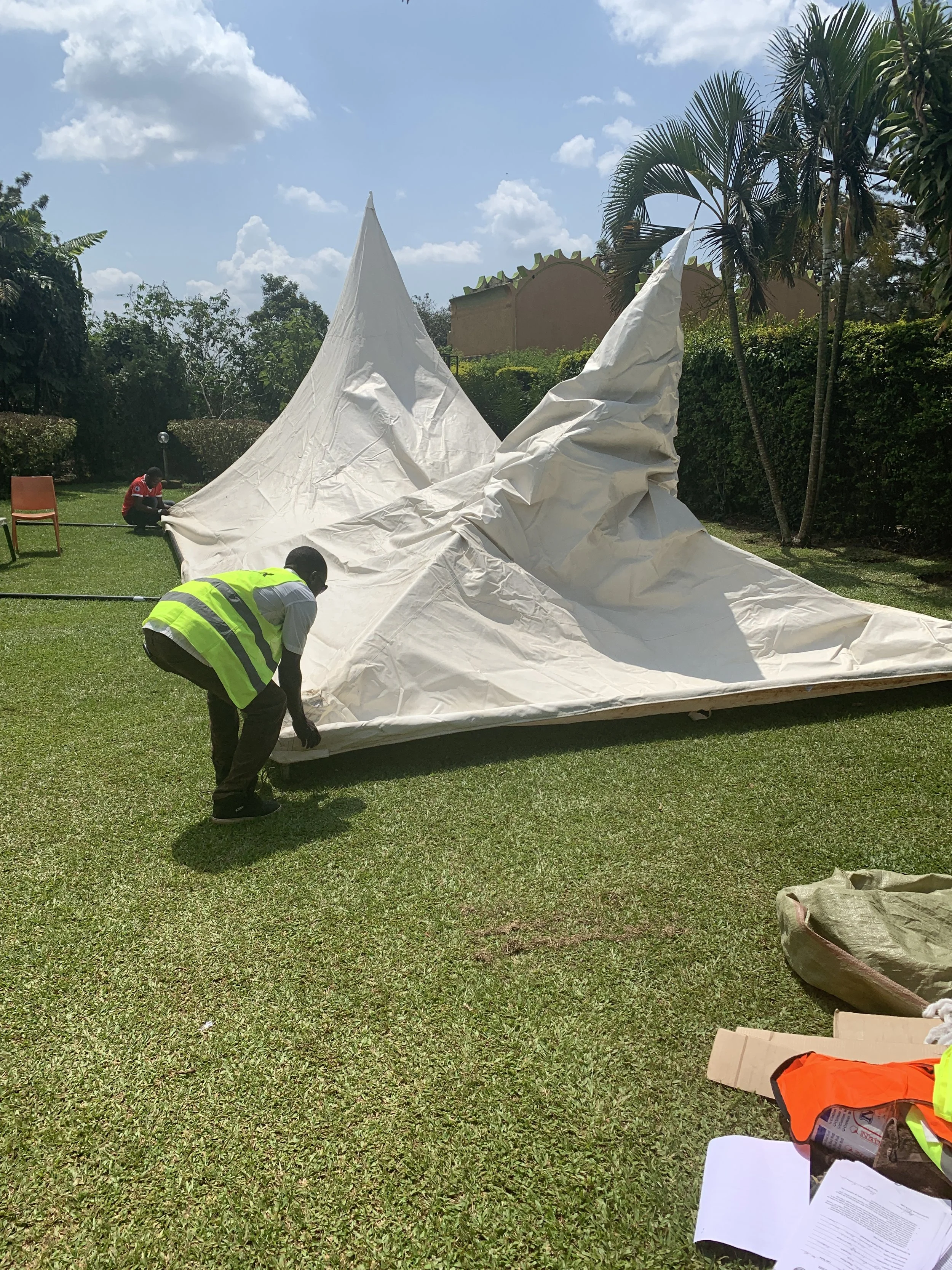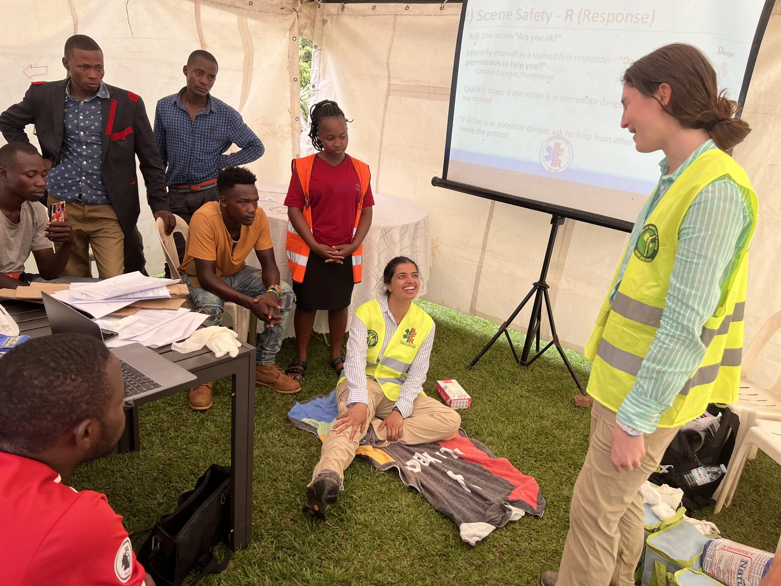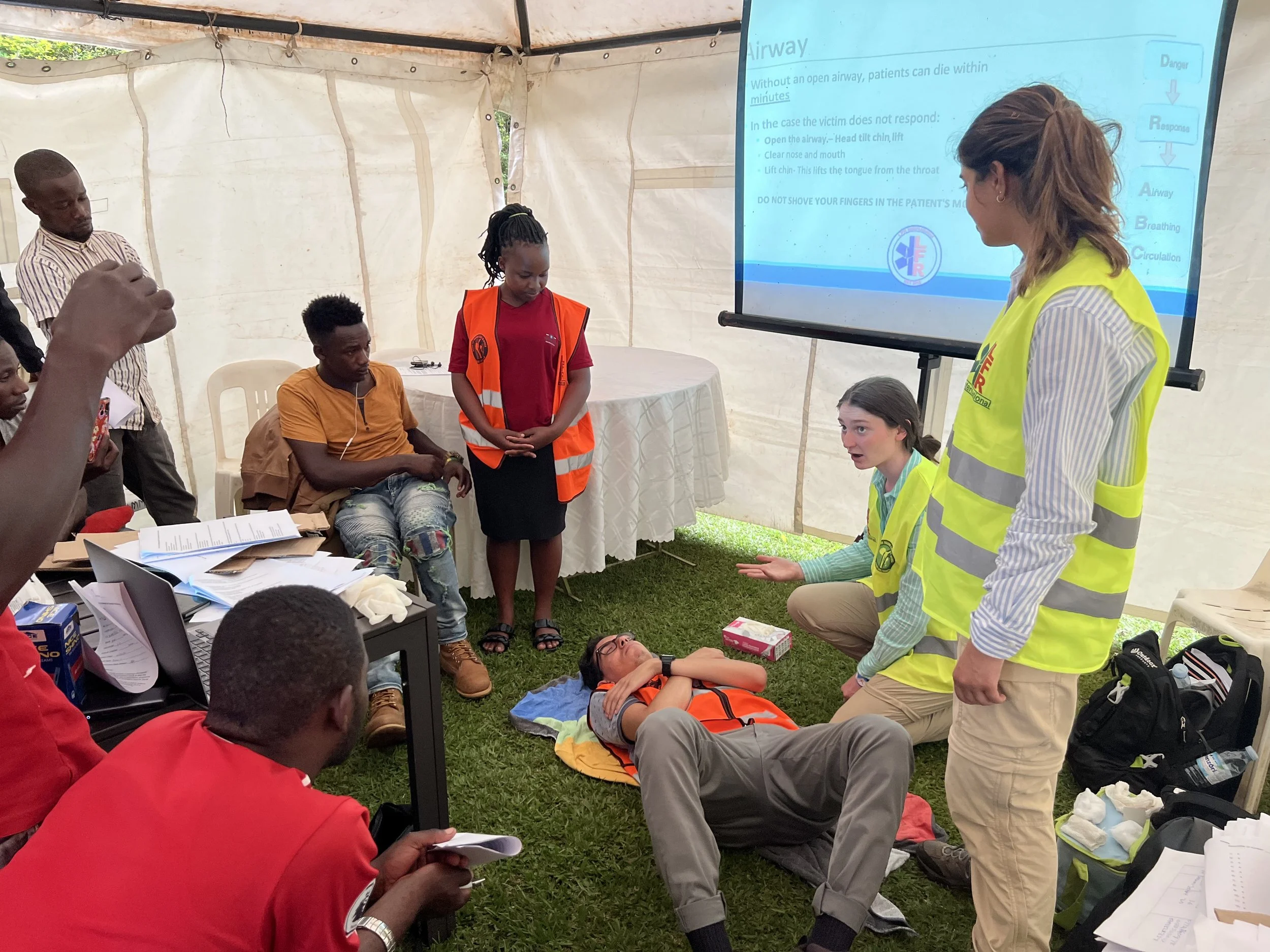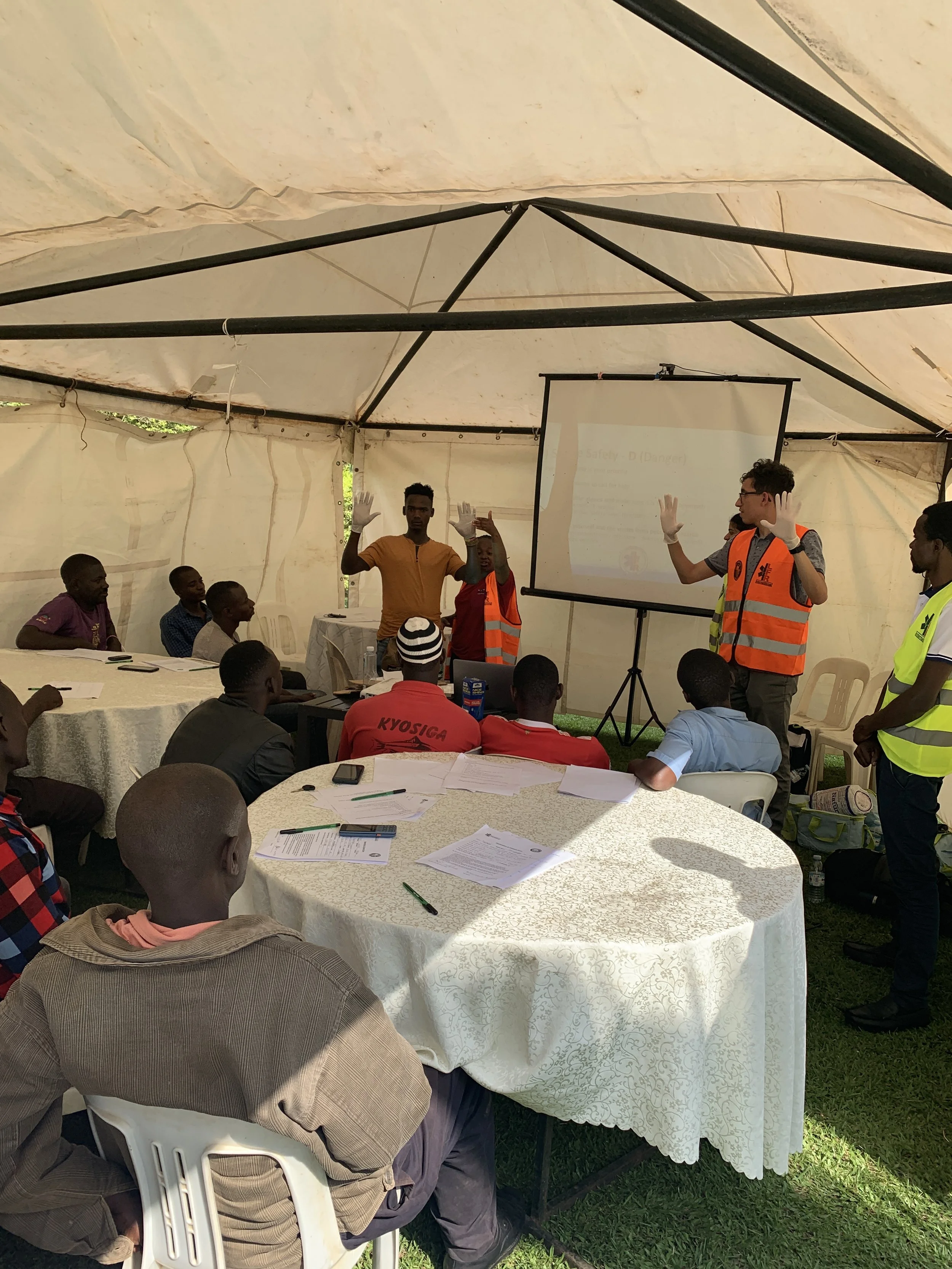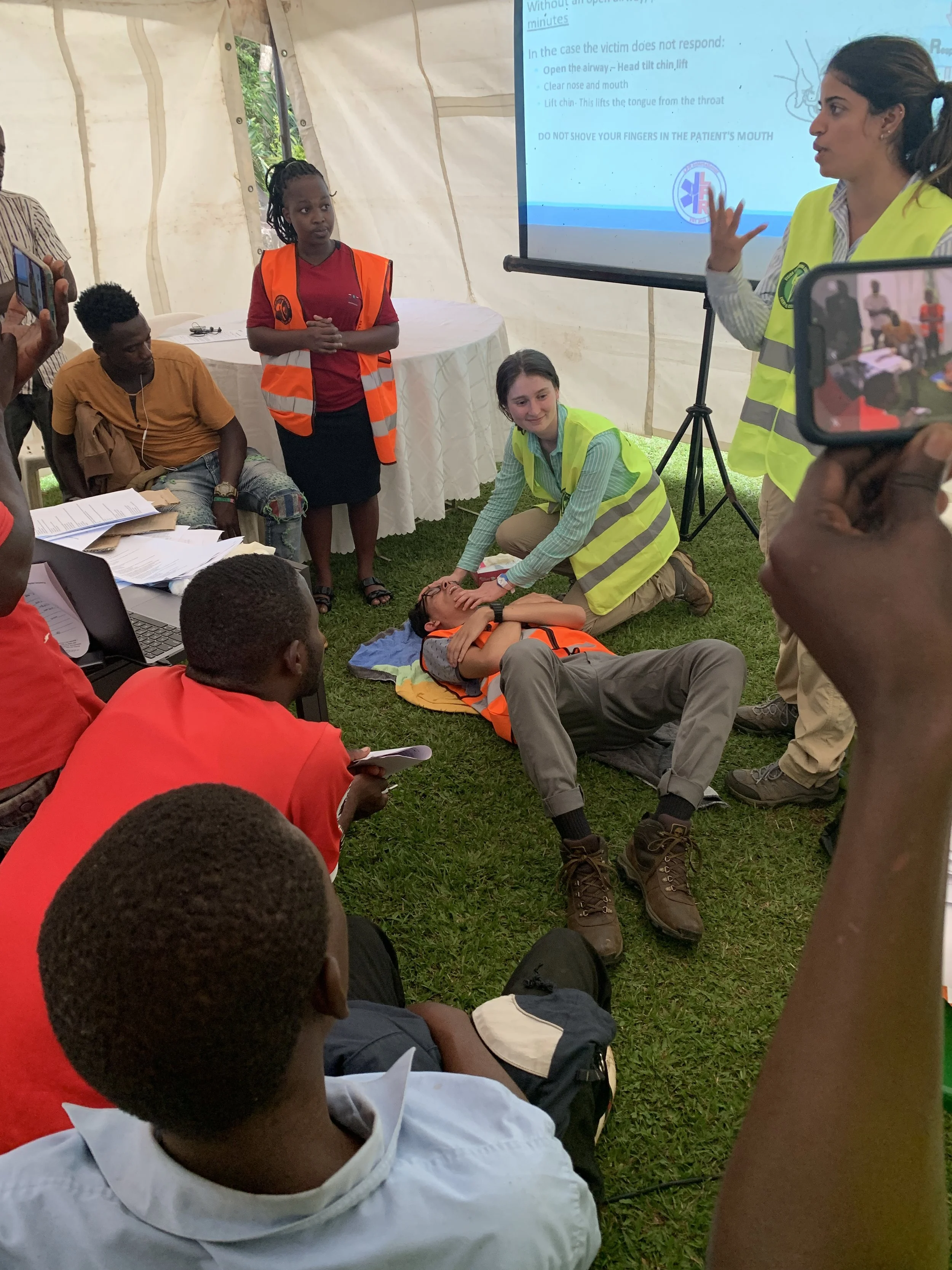 We made our way over to the training center at summer gardens, where Haleigh broke out into heat (and possibly stress) induced urticaria. No projector, no tent, no supplies, a surplus of forms that we don’t need printed out and a shortage of printed out certificates that we did need. But no need to worry! After some shenagaling, we were set to start our first training. There were a couple bumps in the road: the power went out three separate times, and Haleigh’s laptop died before our final topic, so we had to present from pictures on our phones. The boda boda drivers also wanted to leave halfway through to get back to work, so we had to try extra hard to keep them engaged and motivated to finish the training. We ended up skipping one of our fun activities to practice triage and were a bit rushed through practicing splinting and transport. However, we know the first one is the hardest, and we hope it only gets easier from here!
