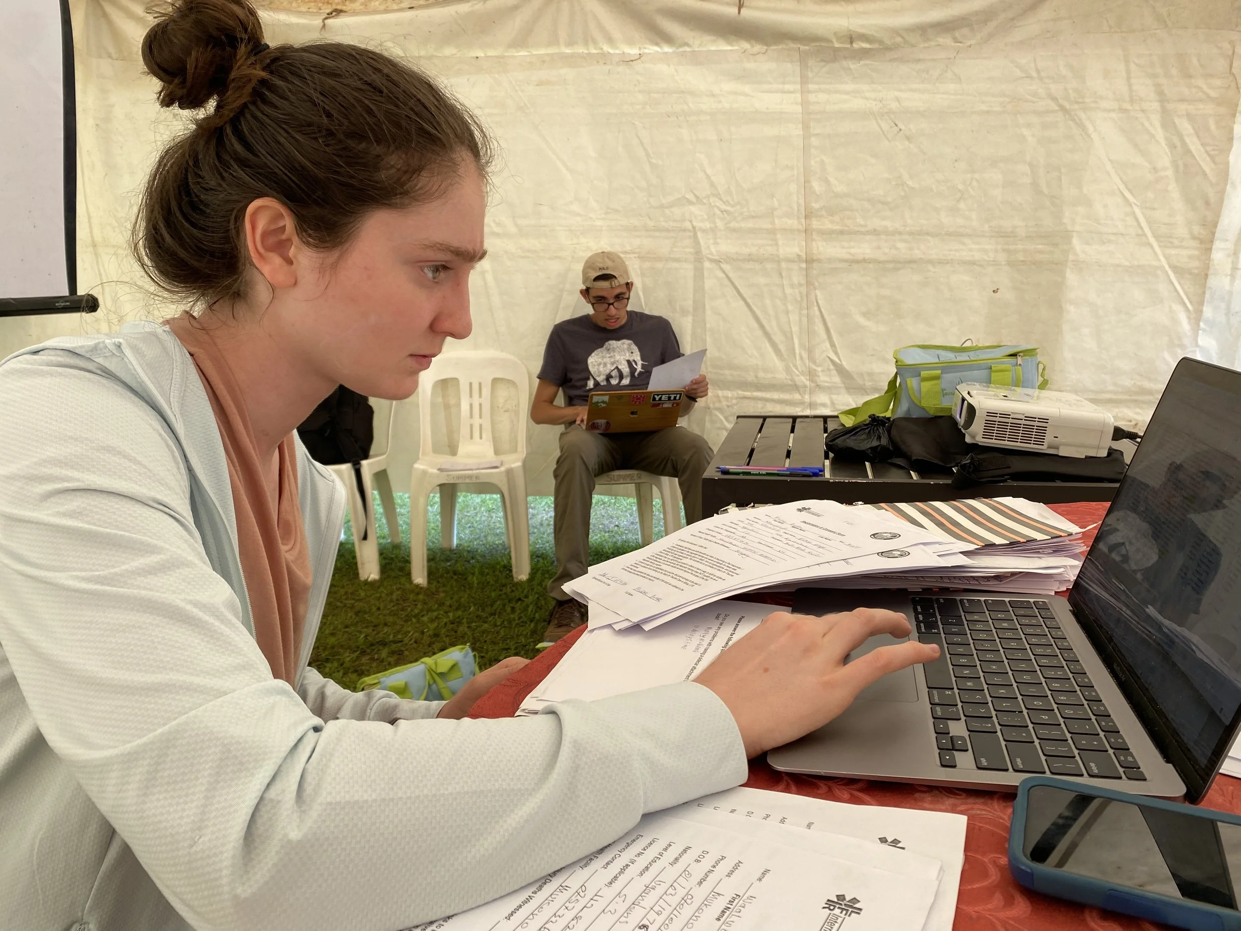 Haleigh and Kyrillos hard at work entering data before the training starts!